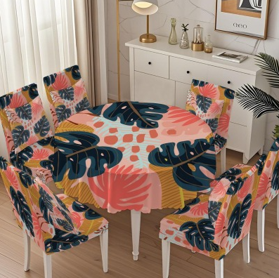 customizable round tablecloth, chair cover, and pillow set of thirteen pieces,Removable Washable Geometric Parsons Protector for Hotel,