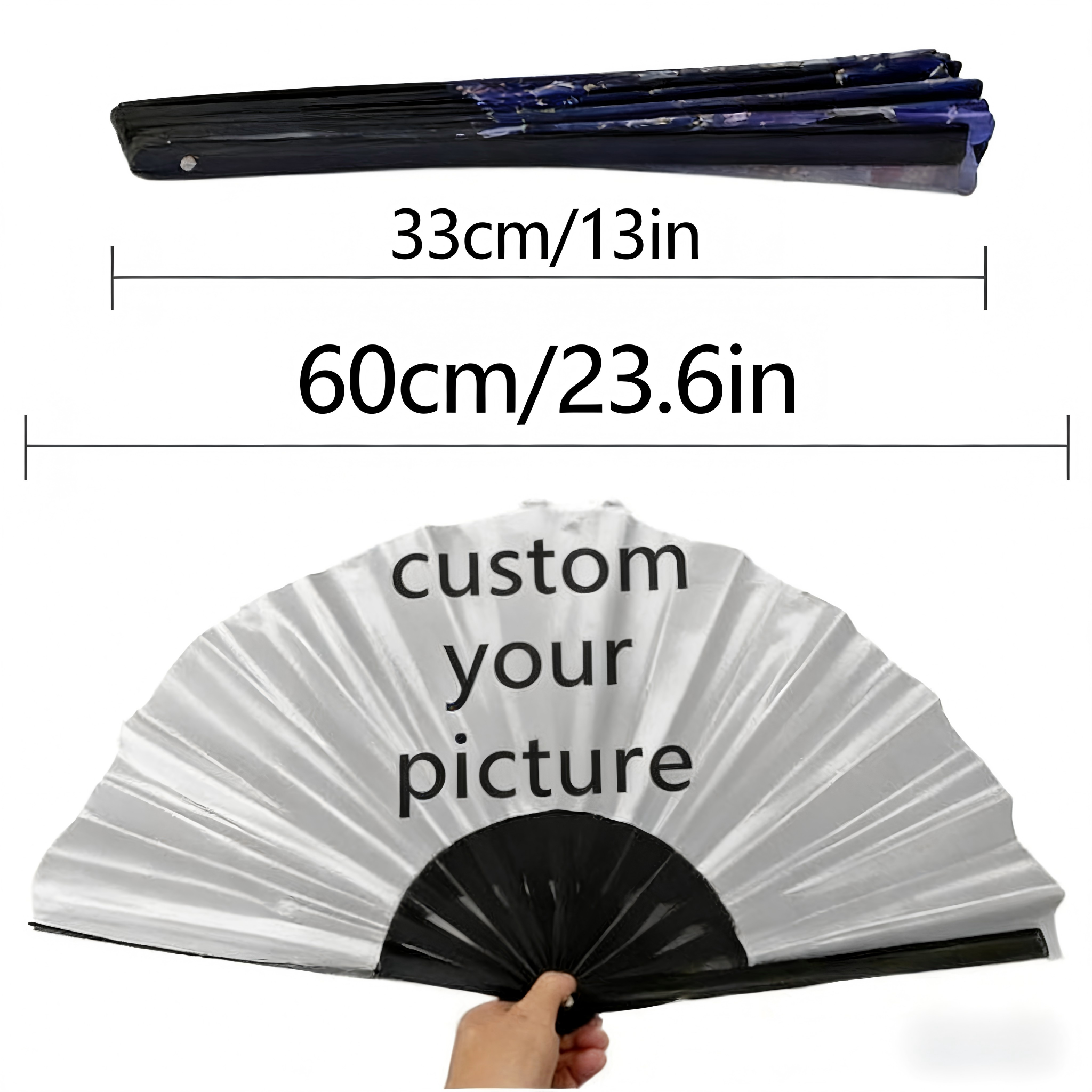 Each fan is customized to your liking, making it a unique accessory for any outfit.