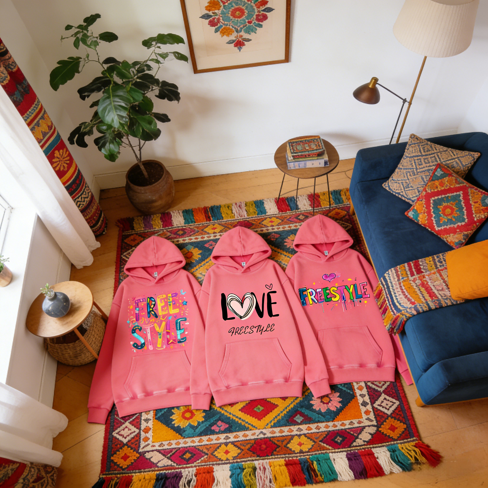 The [Custom Bohemian Print Hoodie] allows you to customize your own unique style pattern and comes with a 70*70cm silk scarf.